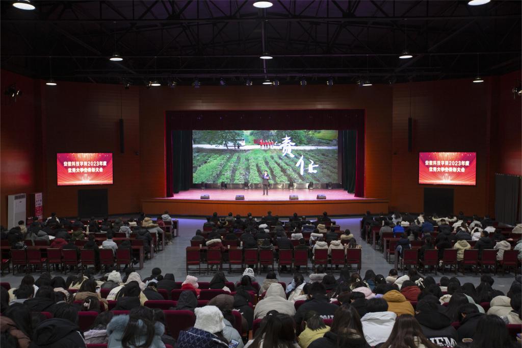 会上,党委学工部部长、学生处处长黄立义介绍了学校2023年学生受表彰情况。“安徽省大学生年度人物提名”“安徽省百优大学生”等优秀学生代表,2023年度安徽省“高校辅导员年度人物”陶漫,分别围绕“笃行”“奉献”“阳光”“创新”“责任”“陪伴”等主题分享了在安科的青春奋斗故事,号召广大同学不断砥砺奋进,勃发青春风采。颁奖典礼中,现场展演了2023年全国网络人气作品奖、安徽省第七届大学生艺术展演等优秀文艺作品。