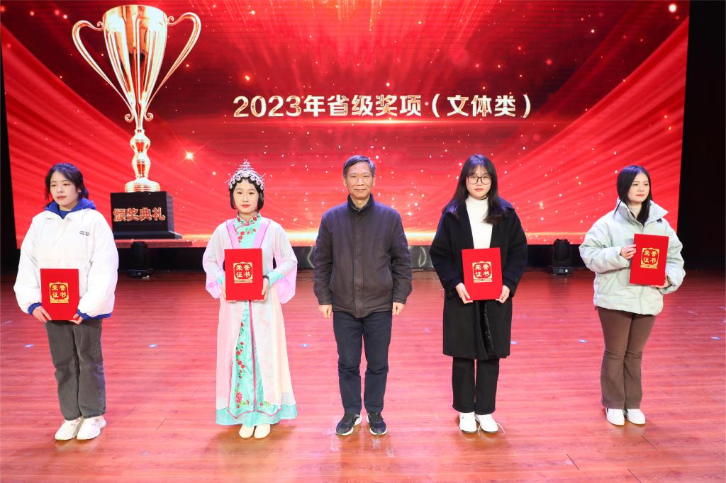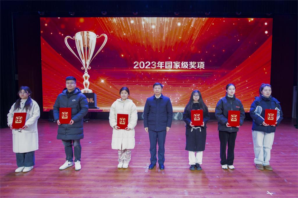 12月20日下午,大棋牌2023年度优秀学生表彰大会在凤阳校区大学生活动中心举行。校党委书记时伟,党委副书记、院长李震,党委委员、副院长黄远友,党委委员、机关党委书记卫胜,党委委员、党委组织部部长钱锐,党委委员、党委宣传(统战)部部长何永勇出席大会并为获奖先进集体和个人颁奖。