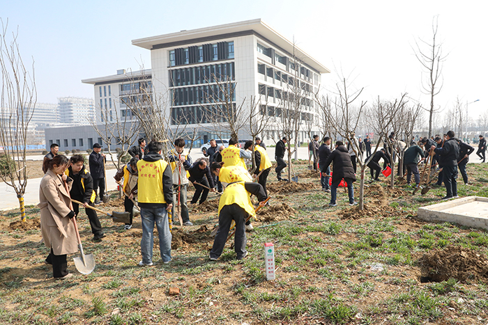 人勤春来早,植绿正当时。3月12日是植树节,当天上午10时许,校党委书记时伟,党委委员、副院长王孝义来到龙湖校区,与后勤保障部党支部、宣传部党支部、保卫处党支部和安徽阡陌集团党支部党员,龙湖校区师生代表一起开展义务植树活动。