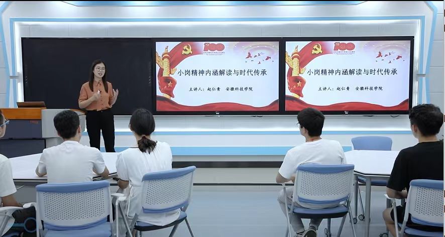 作为团安徽省委青年宣讲师,多年来,赵老师在校内开展了一系列有声有色的宣讲活动,深受青年大学生喜爱,在学生群体中颇具美誉度和知名度。2021年七一前夕,赵老师受安徽省教育厅邀请参加全省大中小学生“同上一堂‘党史’大课”宣讲,她和其他四位专家的共同精彩授课,在全省教育领域引发了强烈反响,线上线下累计观看人次超过900万。在城市,在乡村;在小学,在高中,在大学;在教室,在宿舍,在学校礼堂……全省大中小学的师生们一起学习党史,从中国共产党人的精神谱系中汲取智慧和力量。2022年,赵老师在滁州学院、凤阳县职能部门积极宣讲党的二十大精神多场次,深入浅出的阐释获得了受众的一致好评。2023年11月19日皖沪两校在小岗村同上一堂大思政课,赵老师作为主讲教师,催人奋进的讲解给线上线下听课的大学生留下了极为深刻的印象。(特约通讯员:盛青广 摄影:盛青广 审核:张德化 何永勇 编辑:李锦)
