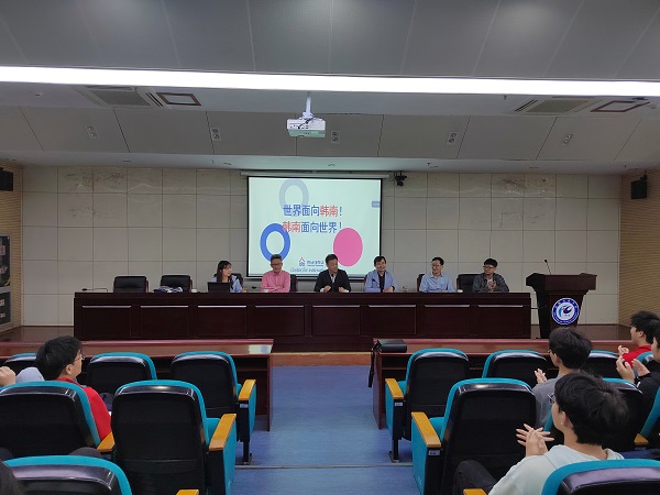 韩南大学代表团访问期间,与大棋牌2022级、2023级机械设计制造及其自动化专业中韩班学生举行了见面交流会。连漪详细介绍了韩南大学的历史沿革、校园建设、师资力量、科研能力、校园文化、学生发展等情况,使同学们身临其境。同学们对赴韩国留学相关问题踊跃提问,积极发言。连漪对同学们所提出的问题作了详细解答,并派送了小礼品,鼓励同学们努力学好韩国语和专业课程,欢迎同学们赴韩南大学留学深造。(特约通讯员:于卉 摄影:于卉 凌俊秋 审核:陈德用 胡文靖 编辑:李锦)