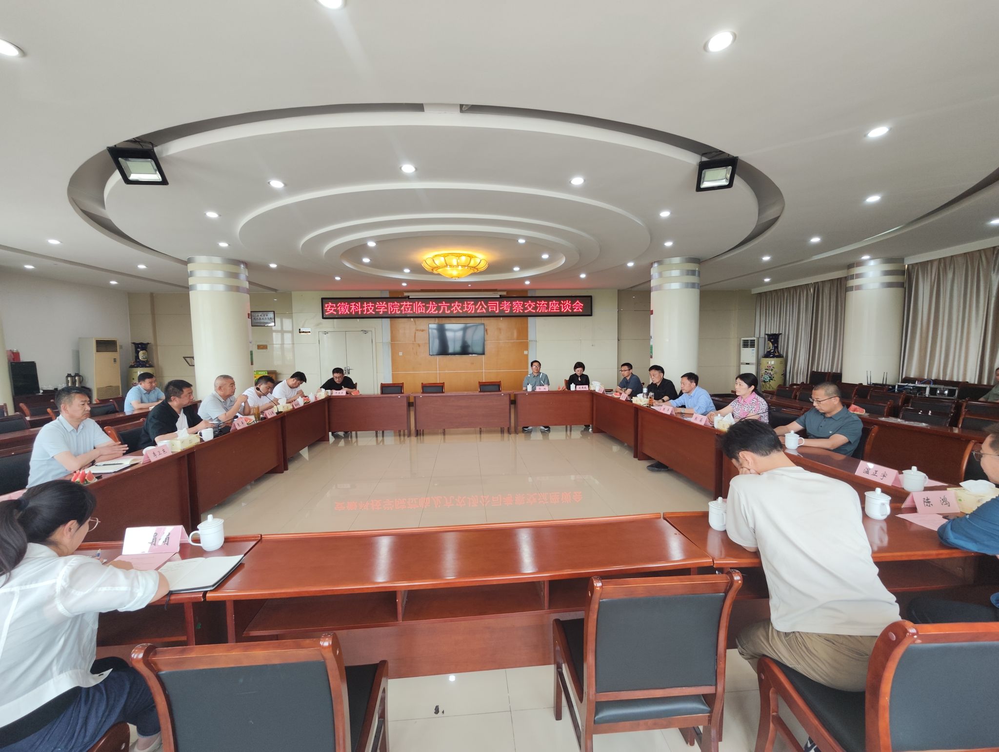 5月18日,校科研处处长陈丰带队赴安徽农垦集团龙亢农场开展校企合作及建设农业强省课题调研,农学院院长崔广荣,机械工程学院副院长(主持工作)李同杰,食品工程学院副院长翟立公参加调研。安徽农垦集团龙亢农场党委书记、董事长张平陪同调研。调研座谈会由民进蚌埠市委副主委、安徽科技学院支部主委张菊主持。