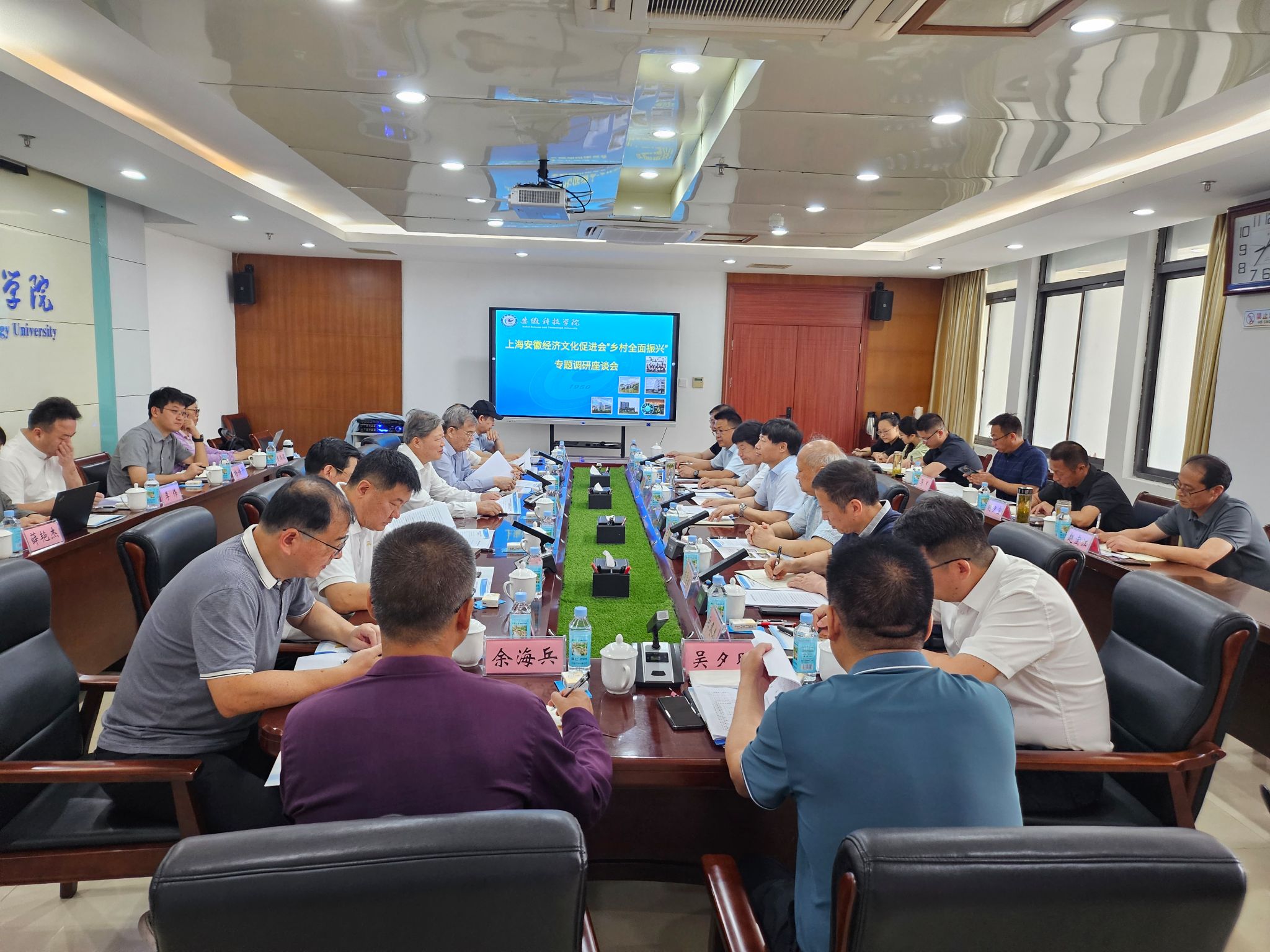 调研组成员、安徽小岗干部学院、滁州职业技术学院、滁州市人大及农业农村局、凤阳县委县政府、凤阳县人大负责同志及专家代表参加座谈会,并就如何利用小岗干部学院平台、涉农院校资源培训乡村适用人才开展充分研讨交流。(特约通讯员:王钊 摄影:卢星辰 审核:卢星辰 胡文靖 编辑:李锦)