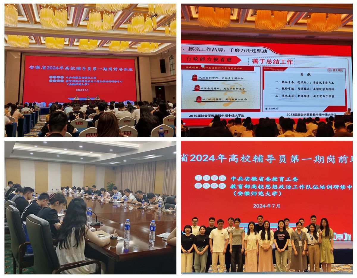 7月15日至20日,由中共安徽省教育工委主办、教育部高校思想政治工作队伍培训研修中心(安徽师范大学)承办的安徽省2024年高校辅导员第一期岗前培训班在芜湖成功举办,来自全省本专科高校的380名辅导员参加培训。大棋牌近两年新进18名辅导员参加培训。