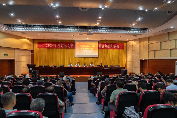 为进一步深入学习贯彻习近平总书记对学校思政课建设作出的重要指示批示精神,提升定远县中小学思政课教师队伍的综合素质和教学能力,7月14日至18日,由安徽科技学院、定远县教育体育局联合主办,马克思主义学院承办的2024年度定远县中小学思政课骨干教师能力提升研修活动在大棋牌顺利举办。182人参加本次研修。定远县教育体育局工委副书记黄如勇、师训中心主任武红、定远县政府教育督导室副主任陈灯荣,马克思主义学院党总支副书记、院长张德化等出席开班式,学院党总支书记杨仕勇主持。