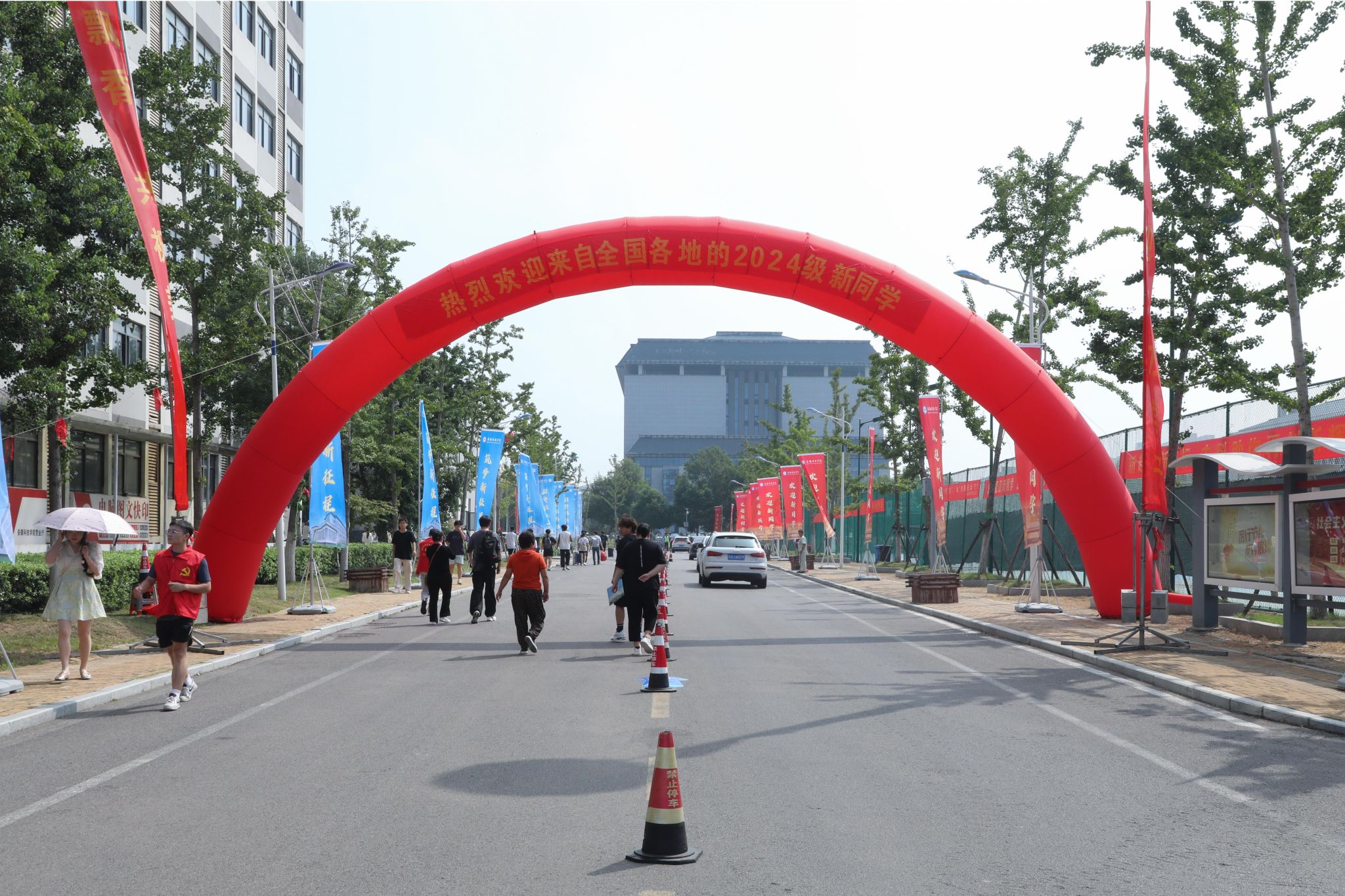 烈日下,校园里有这样一群“马甲”志愿者们来回穿梭,他们举着引导牌,脸上挂满笑容,热情地为新生们指方向、搬行李……竭尽所能地为新生们答疑解惑。现场工作人员有条不紊地为新生们发放宿舍钥匙、校园卡、新生手册以及入学大礼包等物品,帮助新生尽快适应大学生活。