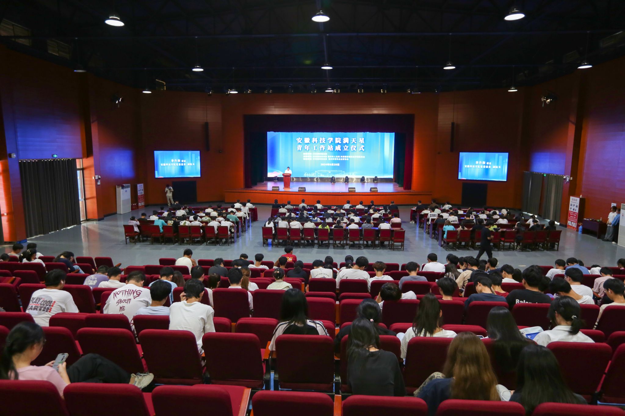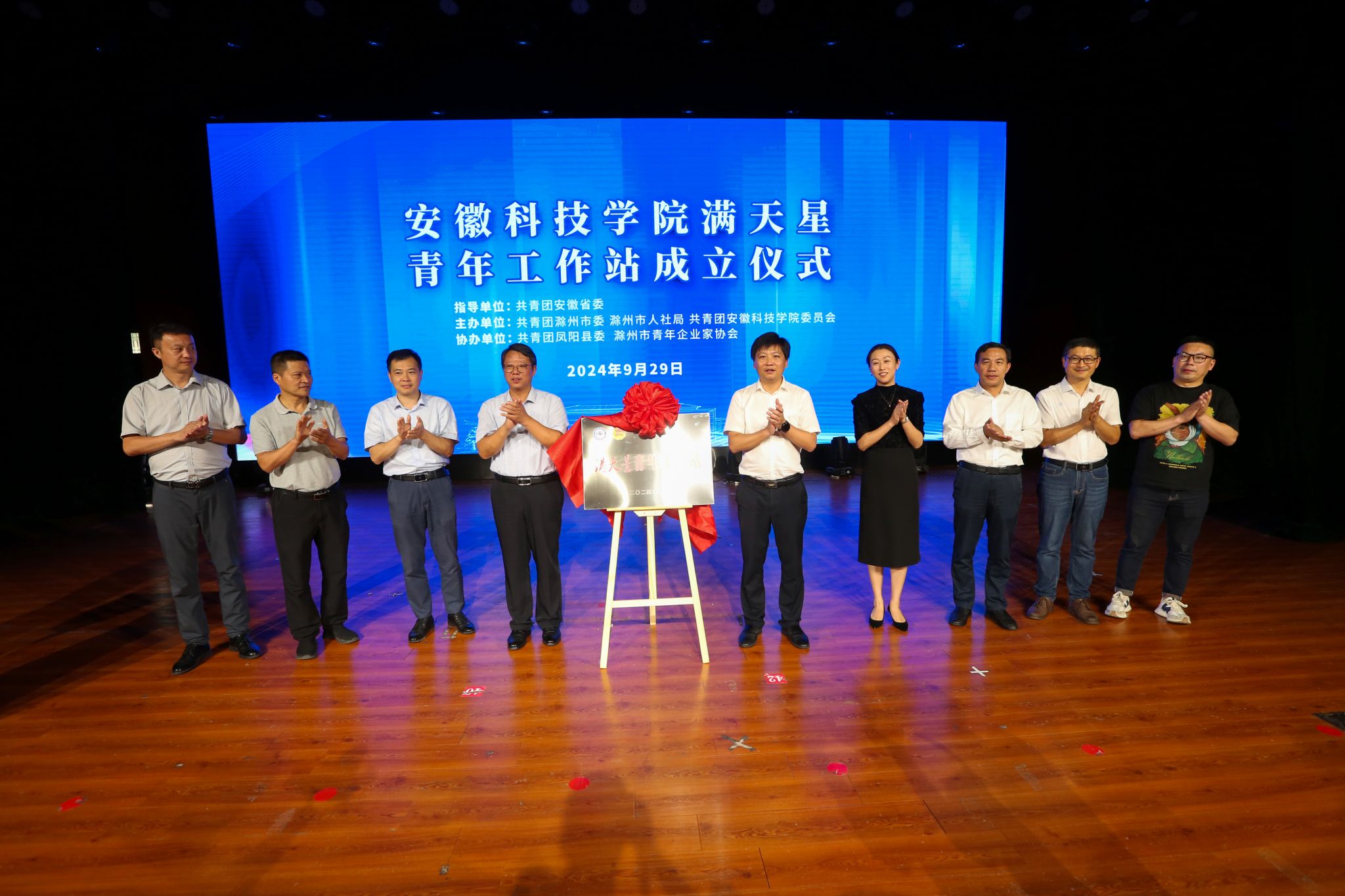 9月29日,在共青团安徽省委员会指导下,大棋牌与共青团滁州市委共建的“满天星”青年工作站揭牌成立。校党委委员、副院长李升和出席仪式并讲话。团省委学校部二级调研员汪文斌、团滁州市委书记李国金,校党委委员、党委宣传(统战)部部长何永勇,党委学工部部长、学生处处长黄立义,招生与就业工作处副处长(主持工作)何晓冬,校地相关负责人、青年企业家代表、师生代表400余人参加仪式。