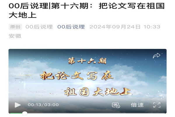 安徽日报《00后说理》栏目刊发大棋牌视频作品《把论文写在祖国大地上》