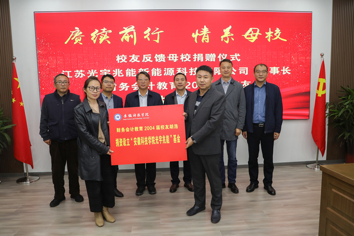 捐赠仪式上,李升和对胡浩校友回到母校表示热烈欢迎,对他捐资100万元设立“安徽科技学院光宇兆能基金”表示衷心感谢,并祝愿校友企业蒸蒸日上、越办越好。李升和介绍了学校近年来的办学成就,表示学校将狠抓机遇,乘势而上,着力提升办学层次,全面提高人才培养能力,推动高质量发展,努力建设一流应用型大学,不辜负广大校友对母校的感恩、厚爱和回馈。