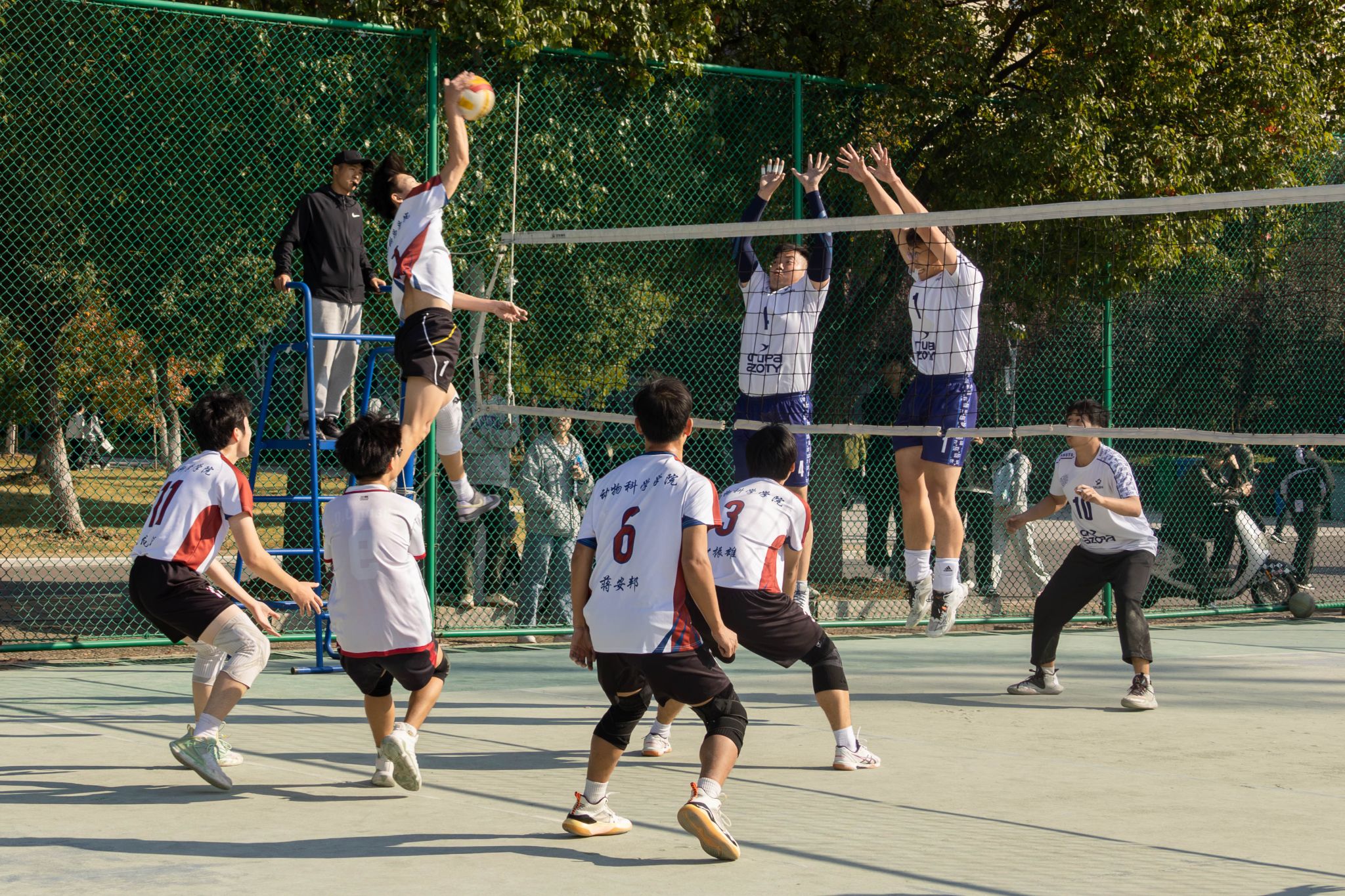 2024年大学生排球联赛吸引了来自凤阳、龙湖两校区的14个学院,28支队伍的300多名运动员参赛,在历时两个月的比赛中,历经校区循环赛、季后赛,全体运动员践行体育精神,积极参赛、顽强拼搏,精诚协作,充分展现出安科学子的昂扬向上的精神面貌,体现了“友谊第一,比赛第二”的运动精神,共同谱写了一首属于安科排球的美好乐章。