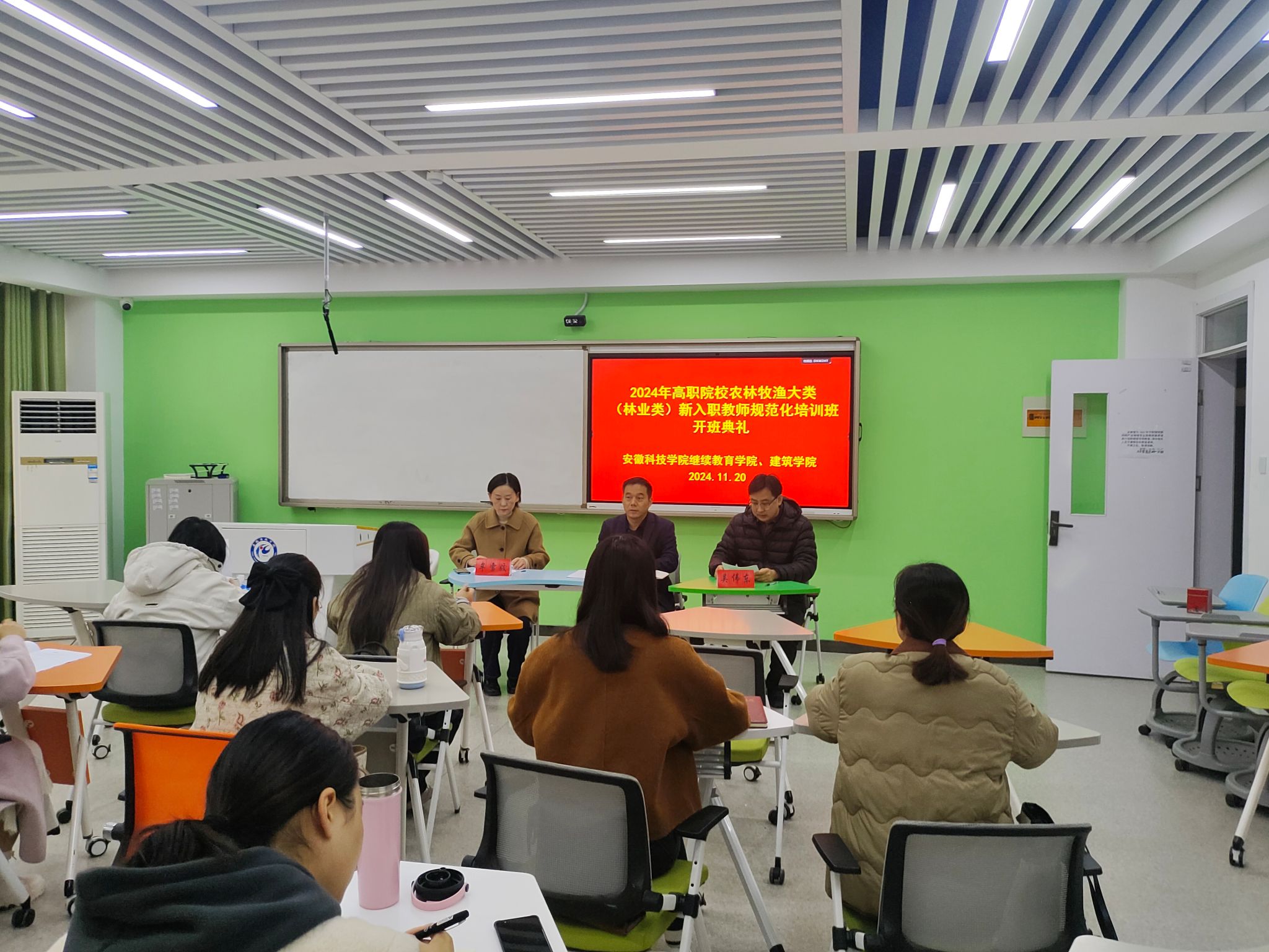 11月20日上午,由大棋牌承办的安徽省高等职业院校农林牧渔大类(林业类)新入职教师规范化培训班在凤阳校区求知楼B302教室开班。继续教育学院院长李忠,建筑学院副院长吴伟东以及培训班班主任牟雪姣出席了开班仪式,仪式由吴伟东主持。