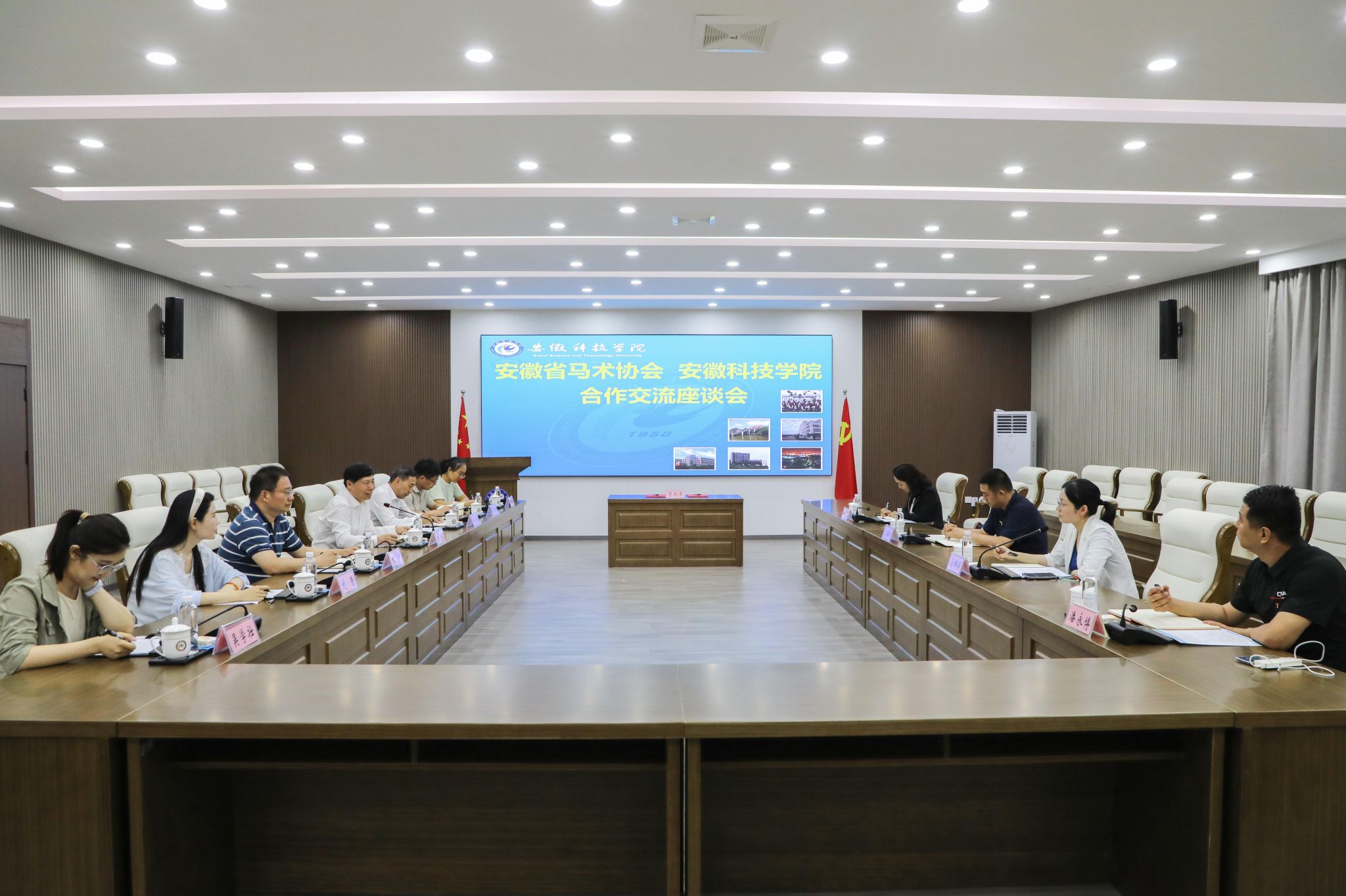6月20日下午,安徽省马术协会主席汪路线一行四人来校考察,围绕马产业人才共育进行座谈交流,签署校协合作协议。党委书记时伟出席座谈交流会并讲话。党委统战部、动物科学学院主要负责人参加座谈交流。