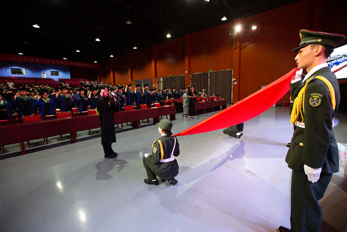 毕业典礼暨学位授予仪式在庄严的国歌声中拉开帷幕。