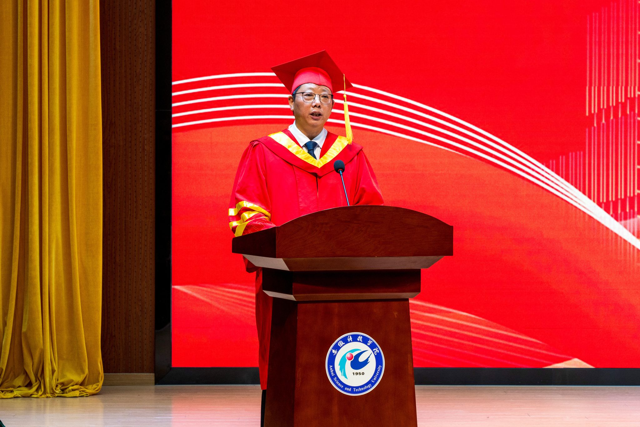 李升和在大会上致辞。他为毕业生们在校期间坚定理想信念、厚植爱国情怀,德智体美劳全面发展,与学校同向同行、对学校事业蓬勃发展的支持和付出点赞。李升和深情寄语2025届全体毕业生:希望大家以“明德”铸魂,以“致知”定航,以“强国有我”的时代感、“时不我待”的紧迫感和“舍我其谁”的责任感,矢志奉献国家和人民,奋进新征程、建功新时代。希望大家以“笃行”为道,以“创新”为翼,“用脚步丈量祖国大地,用内心感应时代脉搏”,厚植家国情怀,脚踏实地、真抓实干,在时代浪潮中成就一番既贡献社会又感动自己的非凡事业!希望大家赓续学校75年办学历史积淀形成的“艰苦奋斗、自强不息、追求卓越”精神,到祖国最需要的地方“经风雨、见世面、长筋骨”,展现出青年一代奋发有为的精神风貌,在民族复兴、强国建设伟业中铸就人生华章。