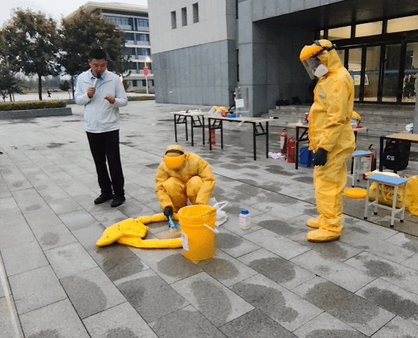 实验室安全应急演练环节模拟了易燃易爆气体燃爆、挥发类有机试剂爆燃、酒精灯着火、危险化学品泄漏等场景,示范人员通过现场演绎,讲解了灭火毯、灭火器等应急处置器材和防护设备的使用方法,演示了泄露现场隔离处置具体流程等,深入剖析了场景演绎过程中的安全问题,让师生在“沉浸式”体验中提升了实操能力。