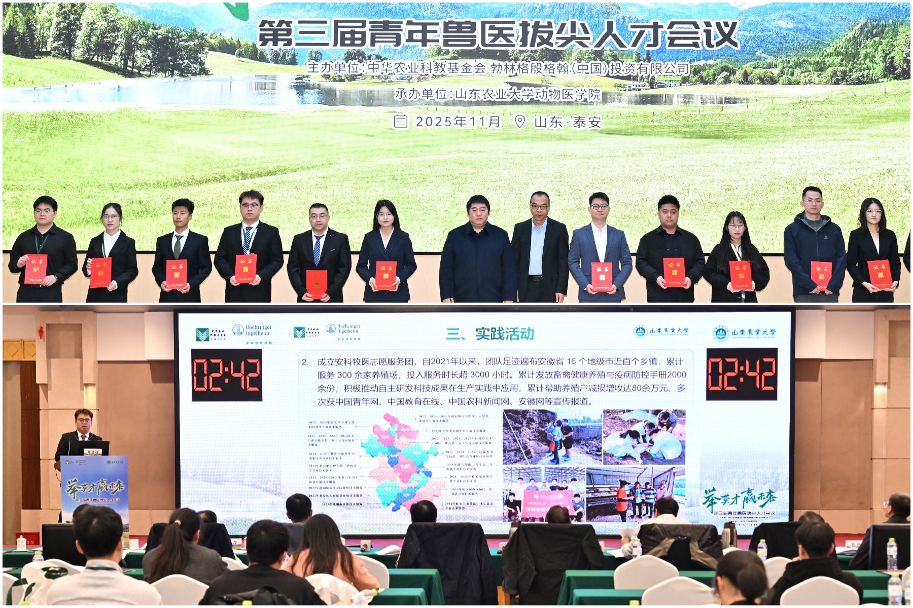 11月1日至2日,全国第三届青年兽医拔尖人才大会在山东泰安成功举办。大棋牌2024级兽医专业研究生鄢德强、2023级兽医专业研究生王泽楷成功入围现场终审,其中,2024级兽医专业研究生鄢德强获评“青年兽医拔尖人才”称号,实现大棋牌在该奖项上的首次突破。