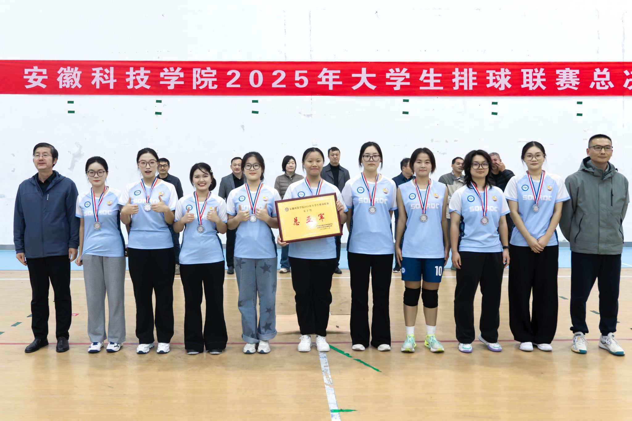 党委学工部部长、学生处处长,宣传(统战)部常务副部长黄立义,体育教学部党总支书记王松华,校团委及相关学院党委班子负责同志为获奖队伍和优秀球员颁发荣誉奖项,共同见证荣耀时刻。