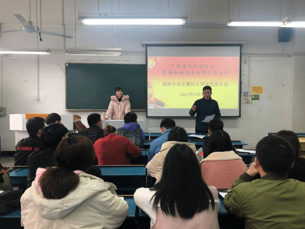 3月15日,资源与环境学院资源和地信专业学生党支部于求知楼B106召开组织生活会暨民主评议党员大会。资源与环境学院党总支副书记沈树周到会指导,支部全体党员参加会议,会议由王丽萍老师主持。
