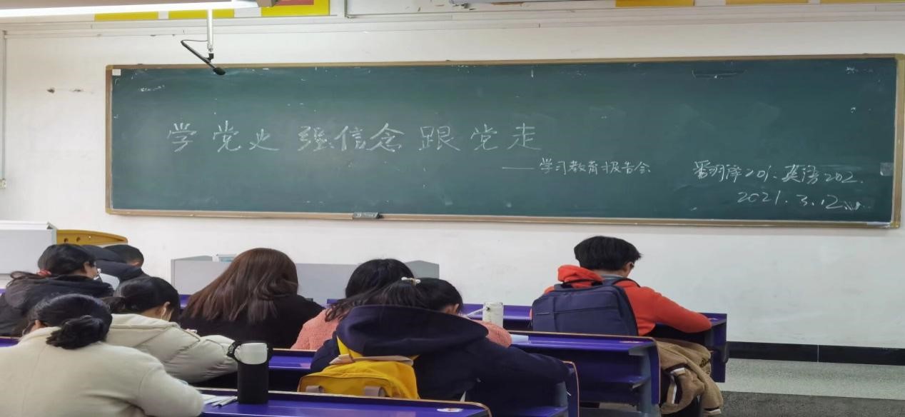 各班级创新学习方式,观看直播后,2020级各班团支部召开“学党史、强信念、跟党走”主题班会,大家一起观看视频、学习讨论,增强了同学们跟党走的决心和信心。2019级班级组织同学撰写观后感,加深同学们对党史的认识,同学们深刻感受到了信仰的力量,感悟到作为一名共产党员要时刻坚定自己的理想信念。2018级团支部通过易班等社交平台,交流自己的观影心得体会。