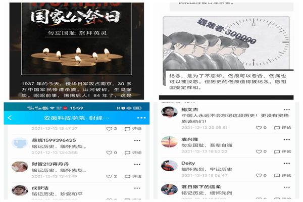 同时,学院积极发挥易班网络育人优势,在线上同步发布“国家公祭日”主题推文,同学们通过易班网络平台,向遇难的同胞们表达缅怀之情,并为和平发声。