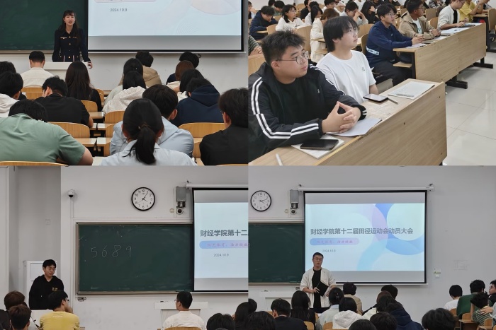 10月11日下午,财经学院在致知楼C109教室召开田径运动会赛前动员会。财经学院团委书记薛枫,学生会指导老师尹成超、院学生会全体成员、各班级体育委员、运动员参加了此次会议。