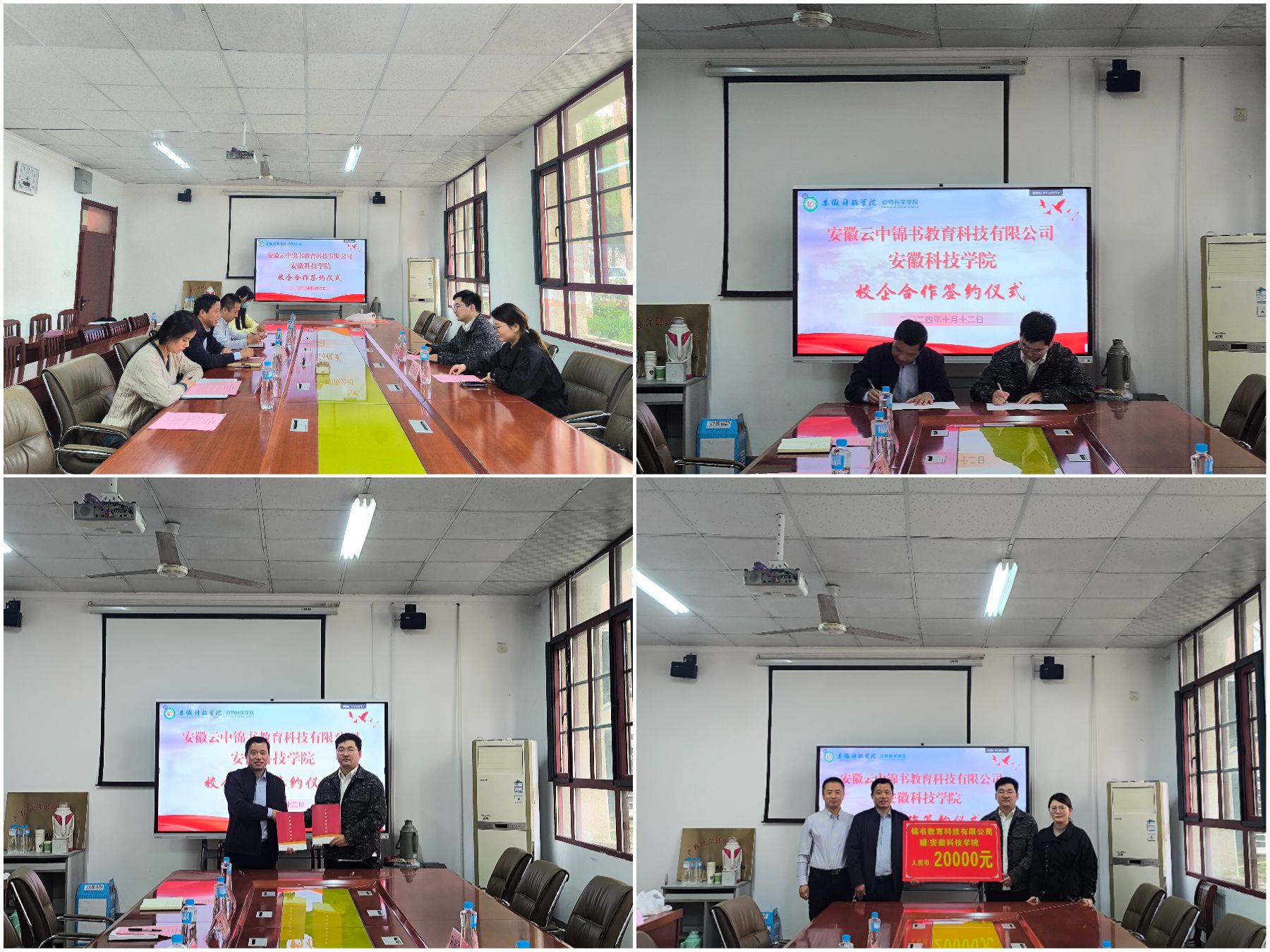 为提高人才培养质量,推动教育资源与行业需求相匹配,10月12日上午,大棋牌与安徽云中锦书教育科技有限公司在西办公楼104会议室举行校企合作签约仪式,动物科学学院党委书记程斌,团委书记李焱,安徽云中锦书教育科技有限公司法人代表、动物科学学院2020届校友孙越洋等人出席此次活动。