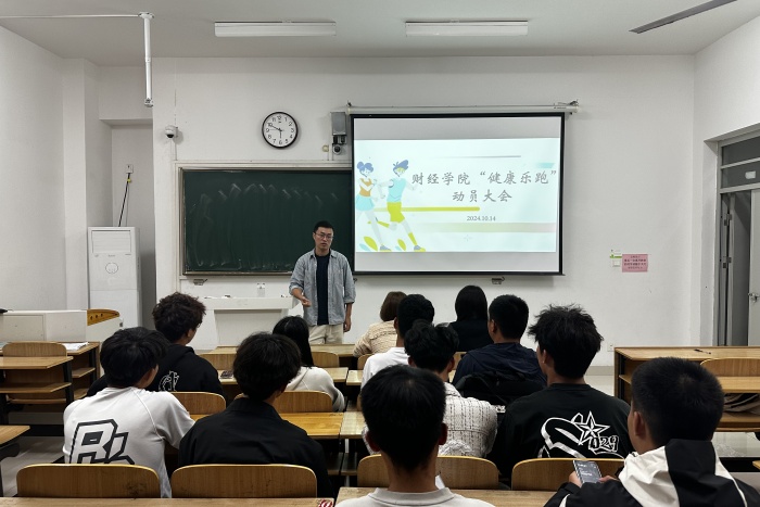 为深入贯彻“每天锻炼一小时,幸福生活一辈子”的体育健康理念,增强学生身体素质,培养学生良好的锻炼习惯,10月14日,财经学院在致知楼A209召开“健康乐跑”动员会。23级、 24级全体体育委员参加会议,学院专职辅导员尹成超主持会议。