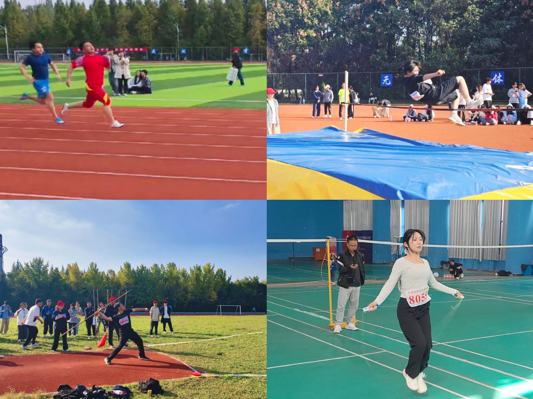 校运会上,全体师生勇往直前、不畏强手、力争上游,以热情、饱满的精神状态在赛道上挥洒汗水,为观众呈现了一幅幅精彩绝伦的美丽画面。在教工组比赛中,崔北坤勇夺男子100米比赛“第一名”;仲苏玉荣获女子对地反弹乒乓球“第二名”;在学生甲组比赛中,吴宝顺斩获男子标枪比赛“第一名”、吴淑晶坚持不懈,顽强拼搏,勇夺女子跳绳项目“第一名”、熊好荣获女子跳高项目“第二名”;黎思成在男子国家体质健康测试比赛中荣获“第二名”。