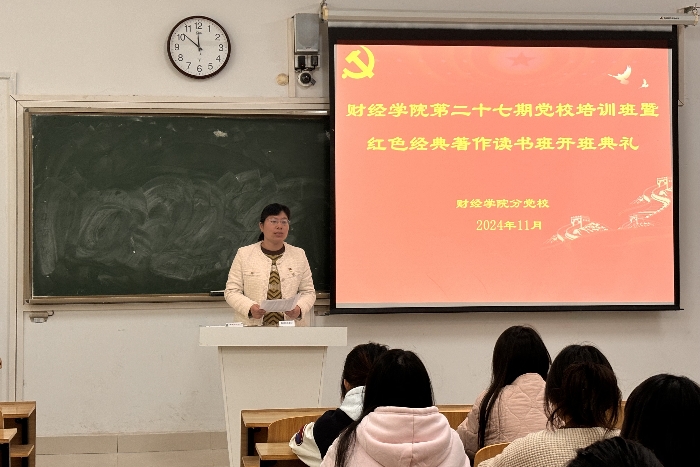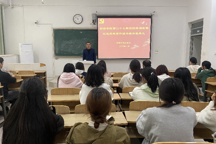 11月6日下午,财经学院第27期党校培训班暨红色经典著作读书班开班典礼在致知楼C107举行。学院党委副书记、纪委书记耿广汉,各学生党支部书记,学生入党积极分子参加会议。会议由学院党政办公室主任张俊主持。