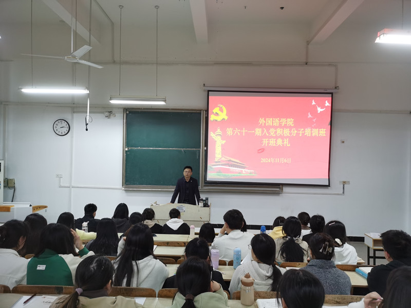 11月6日下午,外国语学院在求知楼A座103教室举行第61期入党积极分子培训班开班仪式。学院党委副书记张海亮出席仪式并作动员讲话。