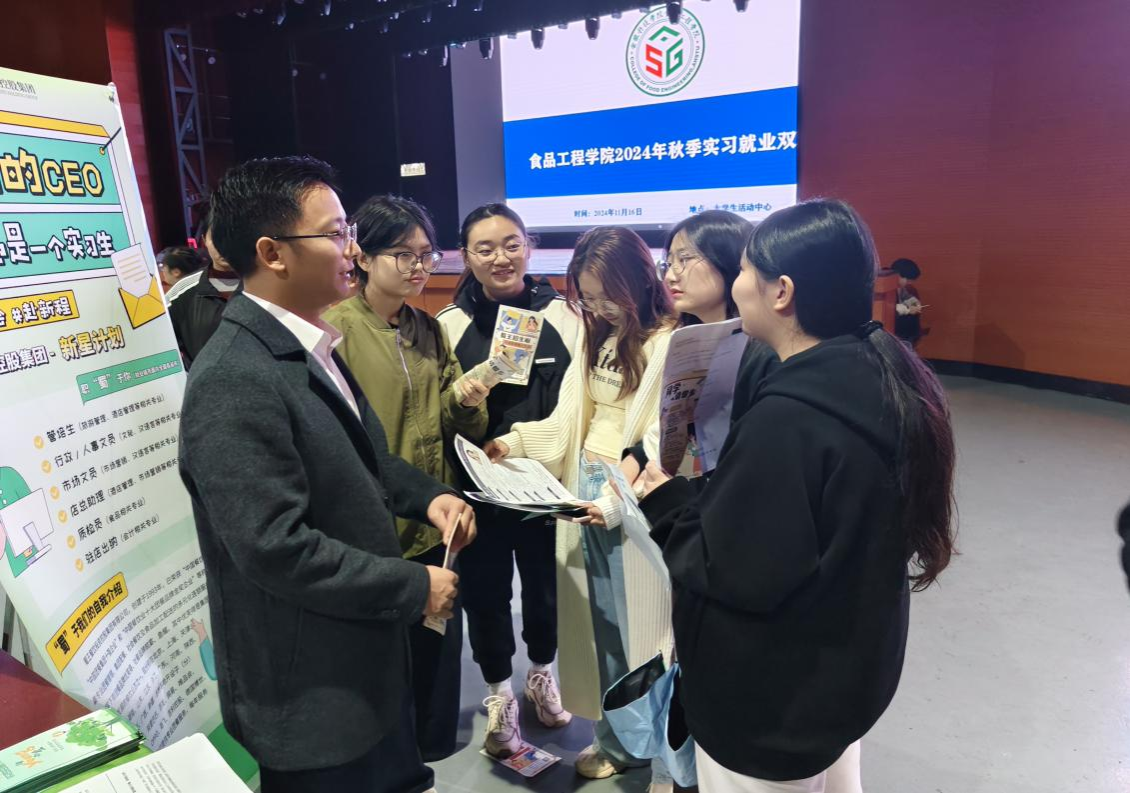 为搭建用人单位和毕业生之间的良好沟通桥梁,为学生提供丰富优质的实习就业岗位,11月16日下午,食品工程学院在大学生活动中心举办了2024年秋季实习就业双选会。学院党政领导亲临现场对进行指导。学院2025届求职毕业生及大三实习学生参加了双选会。