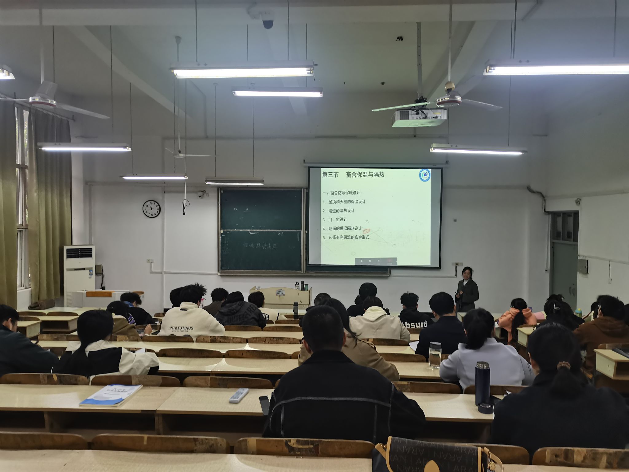 季珂主要围绕《畜舍保温与隔热》,从屋顶与天棚的保温设计、墙壁的隔热设计、门窗设计、地面的保温隔热设计、选择有利保温的畜舍形式等方面展开深入浅出的讲解。季珂理论功底扎实,教学准备充分,教学内容熟悉,讲解熟练,普通话标准流利,注重采用启发式教学,适时与学生的互动交流,取得了一定的教学效果。