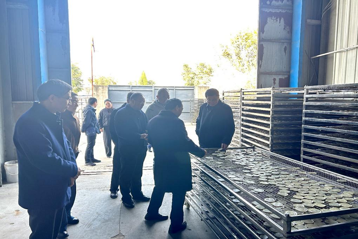 在企业董事长赵大鹏的带领下,与会人员参观了企业的豆制品生产流水线,深入了解企业主打的新产品“豆腐脆片”生产环节,并结合企业实际需求,重点对豆制品生产过程中产生的副产物黄浆水和豆渣的发酵晾晒基地作了考察并调研了企业二期扩展规划。