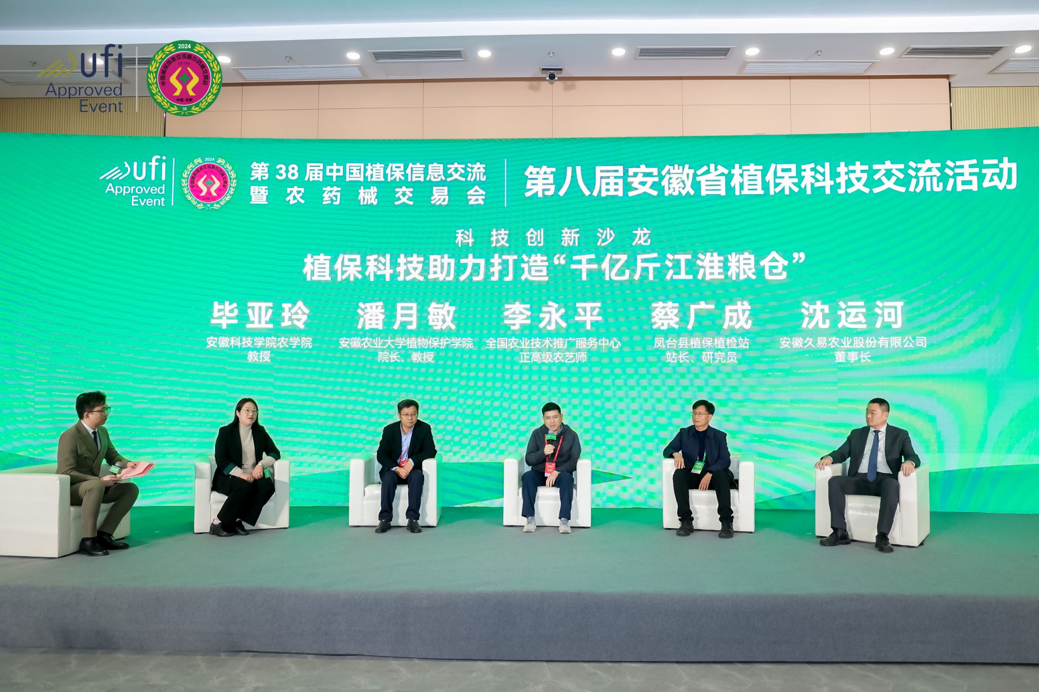 为创新交流模式,更好地服务安徽植保事业,大会邀请了全国农业技术推广服务中心李永平正高级农艺师,安徽农业大学植物保护学院院长潘月敏教授,大棋牌农学院毕亚玲教授,凤台县植保植检站站长蔡广成研究员和安徽久易农业股份有限公司沈运河董事长等专家学者共同开展了植保科技助力打造“千亿斤江淮粮仓”科技创新沙龙。毕亚玲及各位专家结合各自的研究专长,积极发声交流,共同探讨挖掘植保科技新质生产力,旨在为植保科技助力打造“千亿斤江淮粮仓”招才引智。