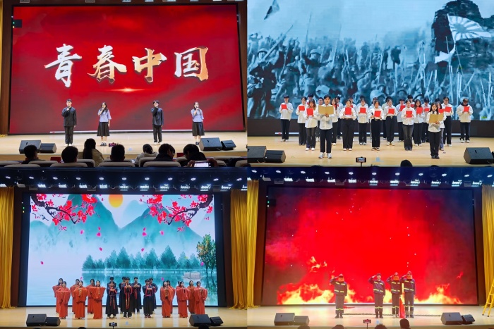 在舞台展示环节,各班级紧扣“青春向党,共筑梦想”主题,通过合唱、舞台剧、朗诵、舞蹈、歌舞剧等多种形式,展现了中国源远流长的历史文化,歌颂党的丰功伟业,展现财经学子永远跟党走,同心共筑中国梦的精神风貌。