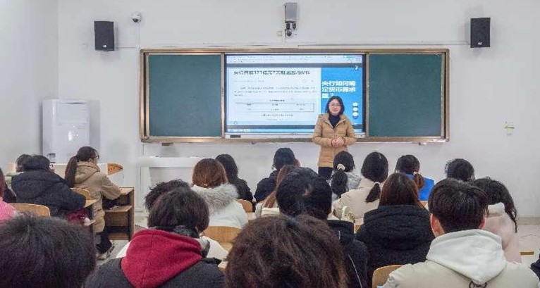 为推动思想政治教育与专业课程的深度融合,12月13日,财经学院杨丽老师在致知楼A301教室进行了一场《金融学》公开课教学展示。