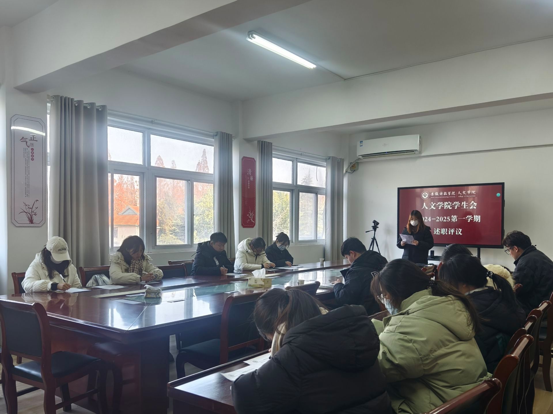 12月26日中午,人文学院学生会在学知楼324会议室召开2024-2025学年第一学期述职评议会暨期末工作总结大会。会议由学生会指导老师徐琦琦主持。