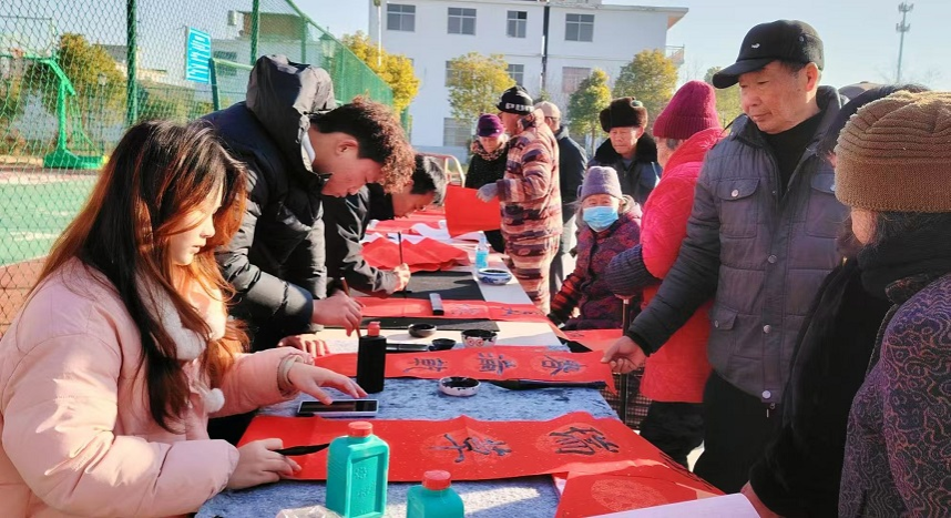 为助力乡村振兴提质增效,营造欢乐祥和的新春氛围,推动优秀传统文化进基层,元旦期间,大棋牌组织书美协会大学生志愿者赴学校定点帮扶的凤阳县枣巷镇黄咀村开展“移风易俗倡新风,春联送福赠万家”文化下乡活动。大学生书美协会指导老师、外国语学院党委副书记张海亮带队指导。