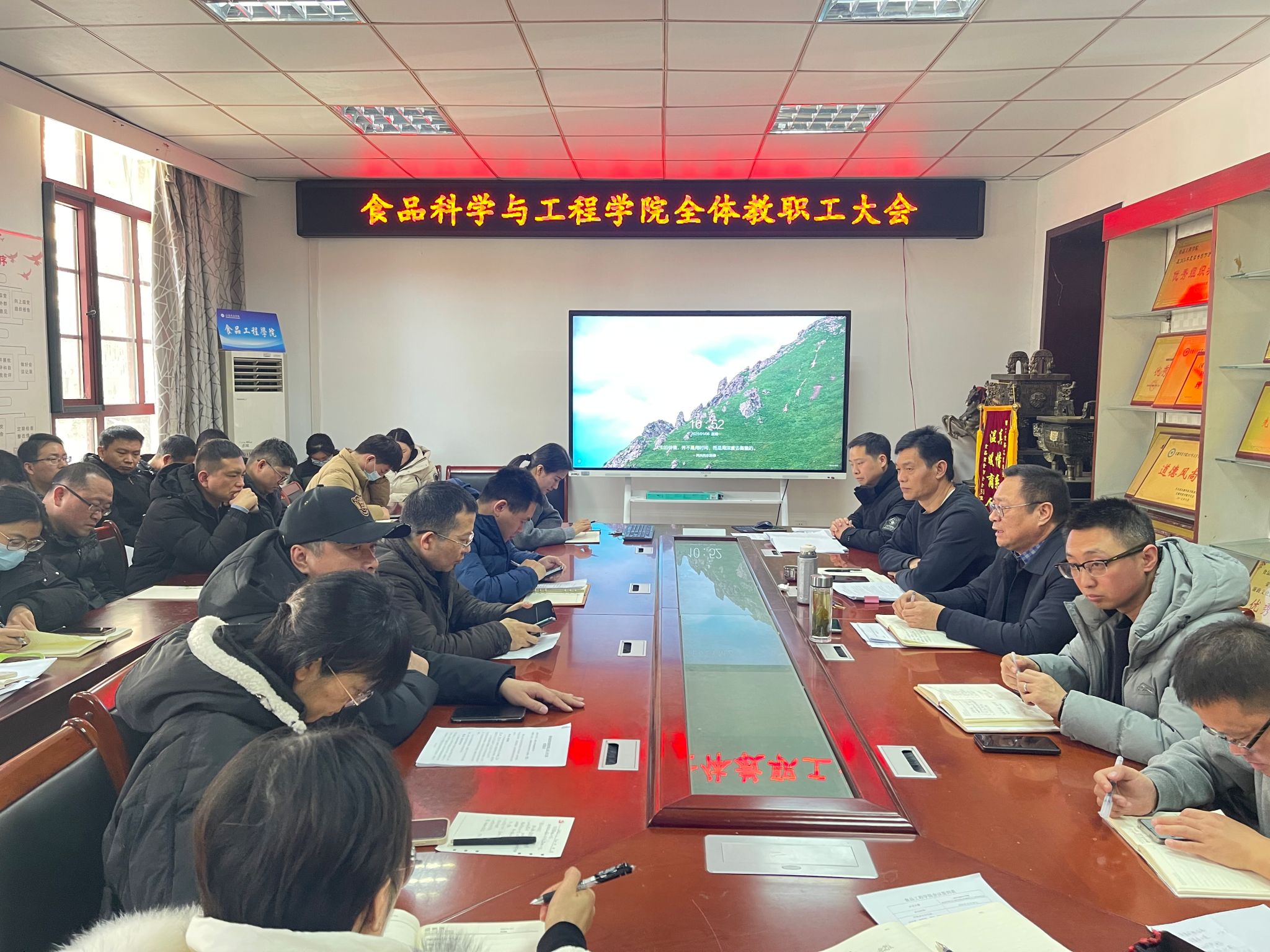 1月6日上午,食品科学与工程学院在东办公楼104室召开期末全体教职工大会。会议由党委书记付光玺主持,学院全体教职工参会。