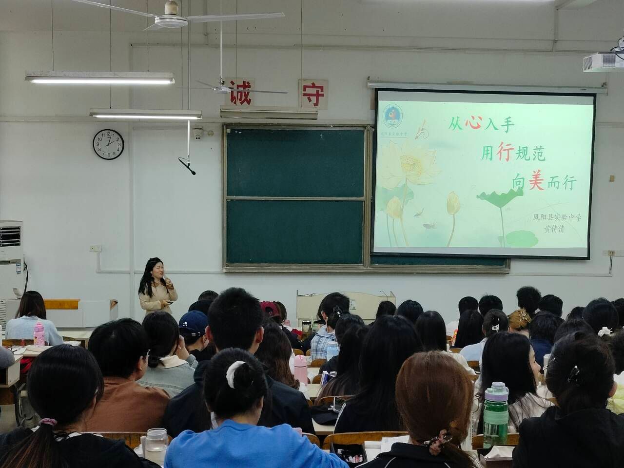 4月15日下午,凤阳县实验中学优秀英语教师黄倩倩应邀来大棋牌作师范专业班级管理专题讲座,2022级全体英语(师范)专业学生参加,讲座由外国语学院副院长洪民主持。