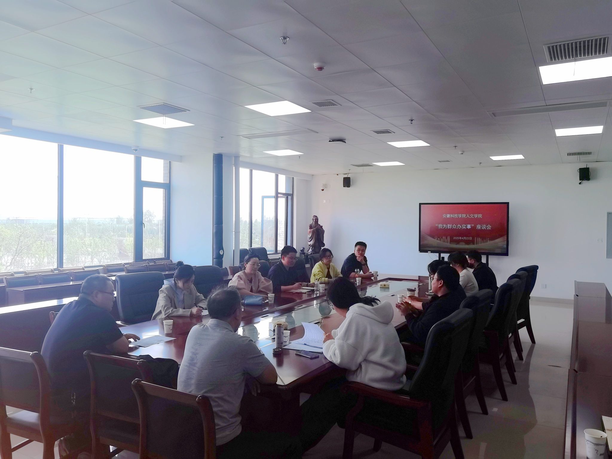 本次座谈会主题为“我为群众办实事,服务师生求实效”。参会师生围绕学院教风学风、工作作风、教学管理与服务、学生教育与管理、科研与社会服务、校区运行与后勤服务等方面展开深入交流探讨。