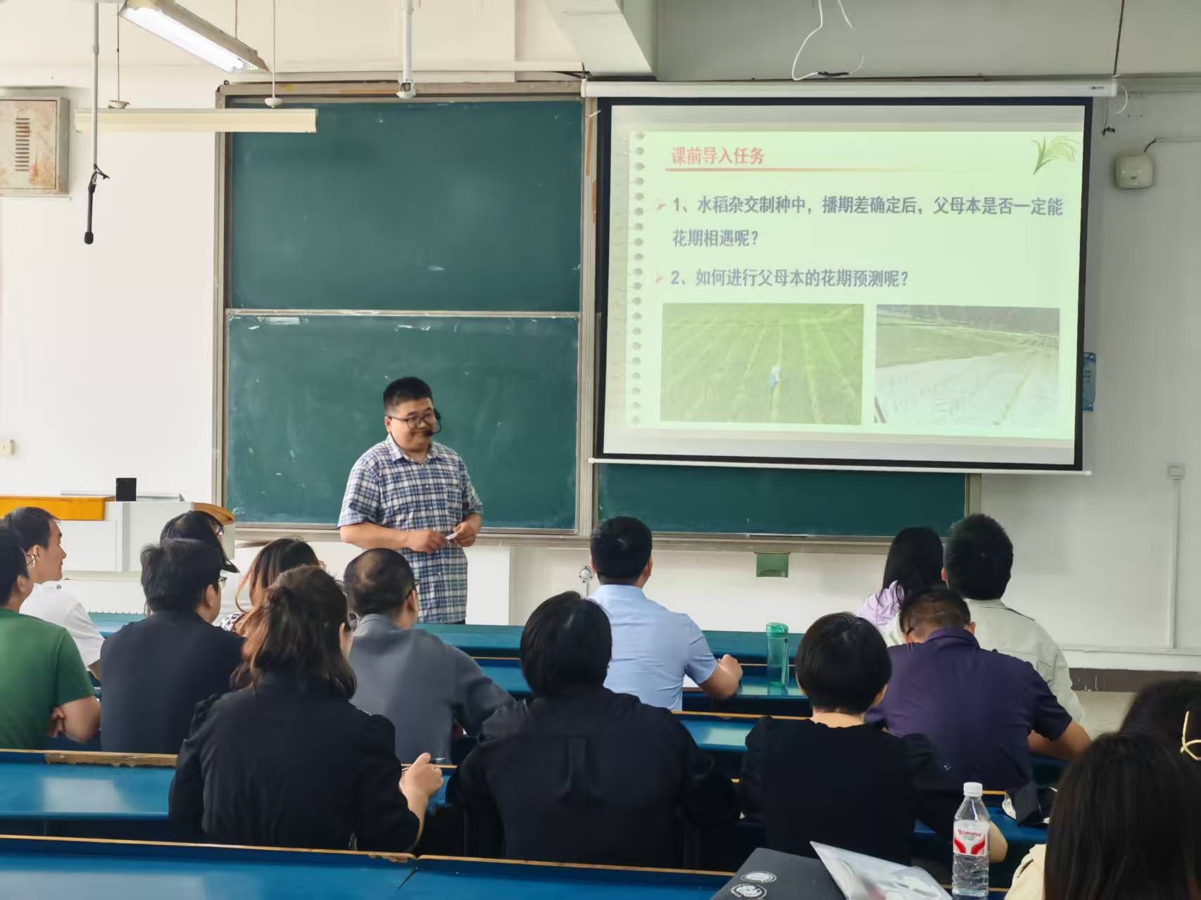 在讲解花期调节技术时,李文阳结合具体案例,生动介绍了通过调整播种期、施肥管理、水分调控等手段实现花期同步的方法;针对花时协调,他分享了如何利用水肥调控技术和植物激素调控等技术,促进父母本花时相遇,从而提高杂交水稻制种的产量和质量。这些内容为青年教师在未来的教学和科研工作中提供了宝贵的经验。