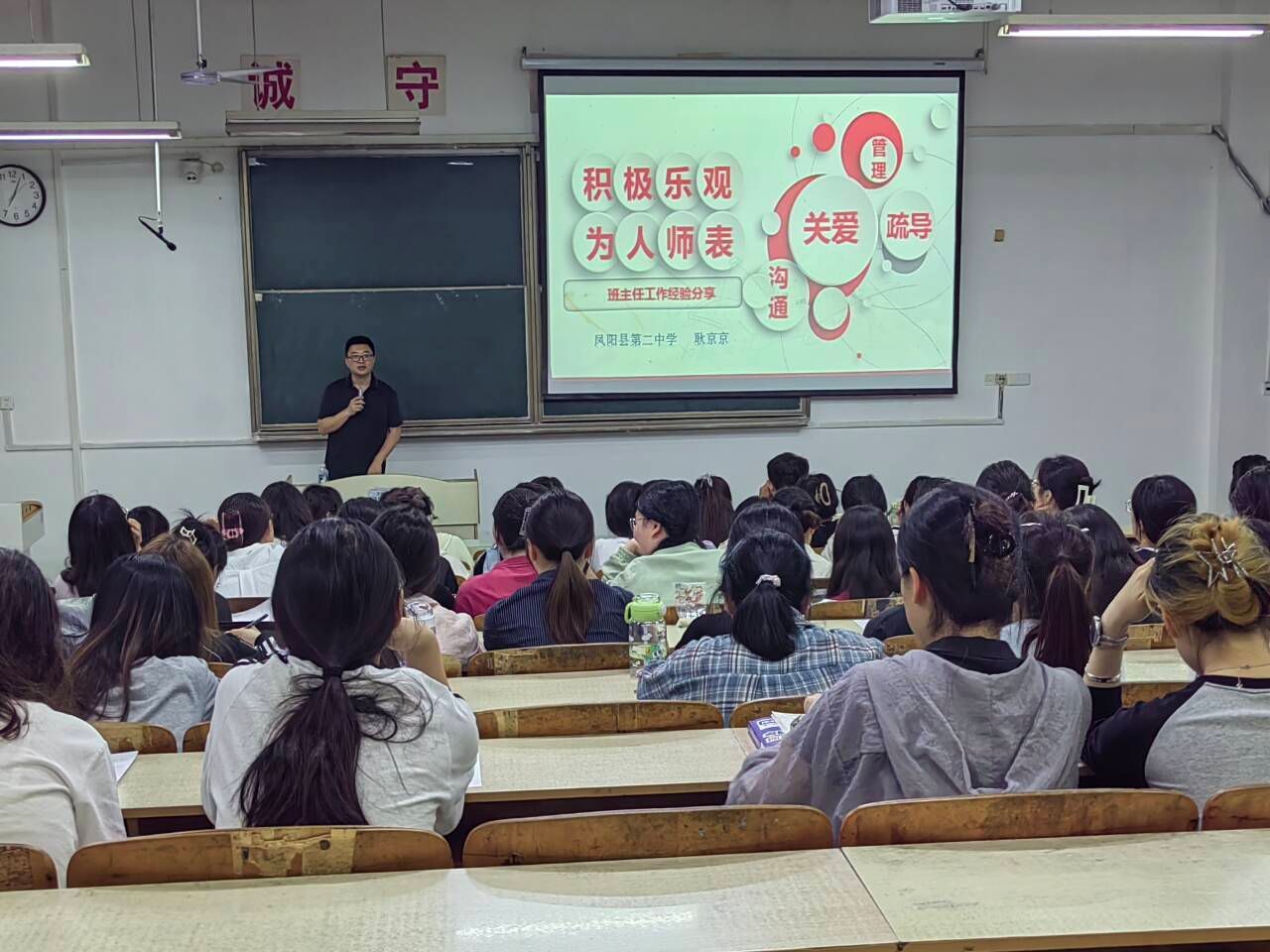 5月7日晚,外国语学院邀请2007届优秀校友、凤阳县第二中学副校长耿京京来校,为2022级英语(师范)专业全体学生做题为“积极乐观,为人师表”的班级管理专题讲座。讲座由外国语学院副院长洪民主持。