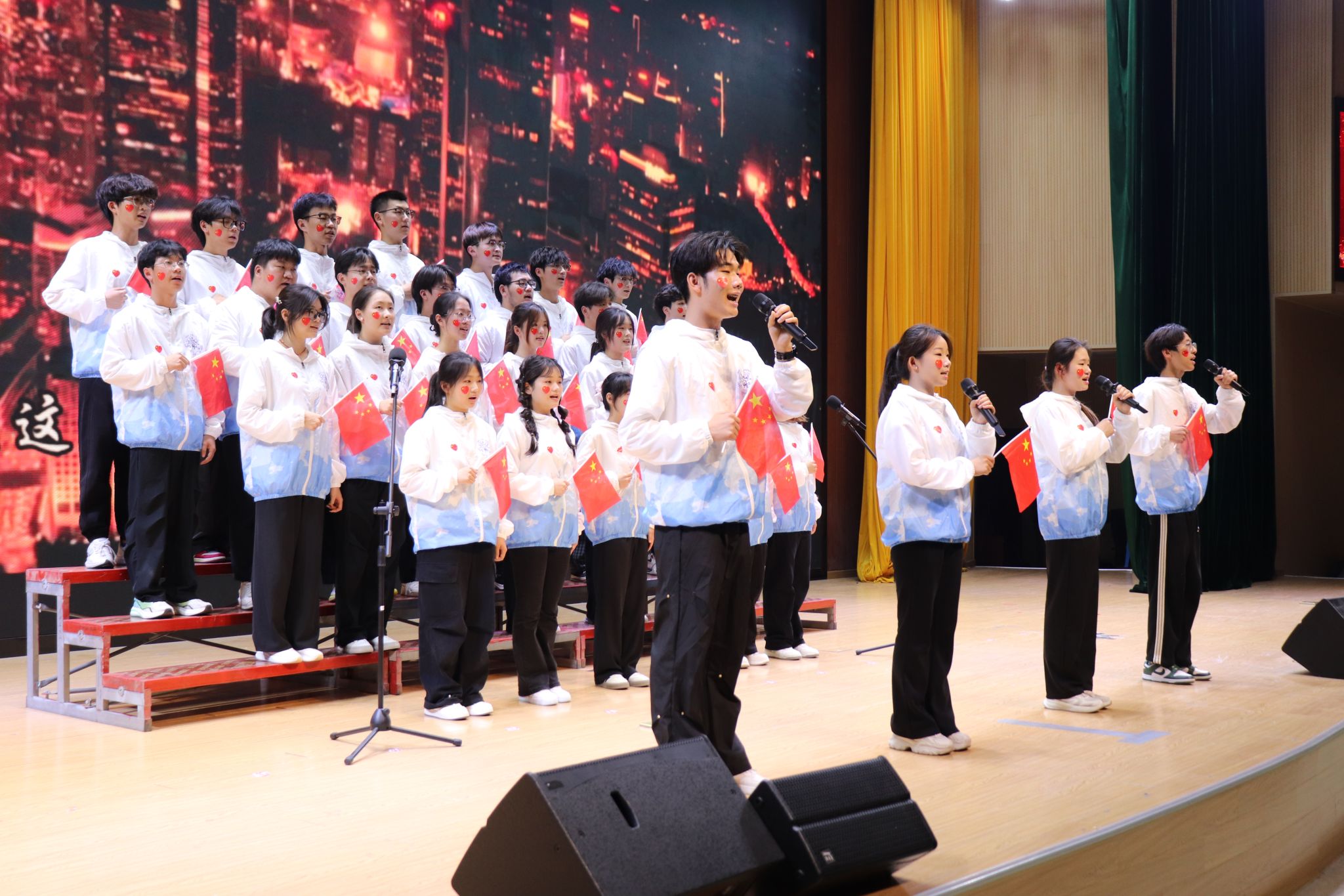 在经过前期的认真筹划与准备,24级13个班级参加本次比赛。比赛现场,同学们激情澎湃、热情高涨,一首《半生雪》以新颖的编排展现青春律动;《我和我的祖国》《我爱你中国》《歌唱祖国》唱出对祖国的赤子之心;《灯火里的中国》《如愿》传递出对祖国繁荣昌盛的赞美;《有我》《奔腾》《少年中国说》彰显青年担当;《紫荆花盛开》《国家》唱出对国家的深情眷恋与美好祝福;《明天会更好》《向光而行》点燃全场对未来的憧憬。最后,信息与网络工程学院学生会成员带来的《万疆》,为比赛画上圆满句号。