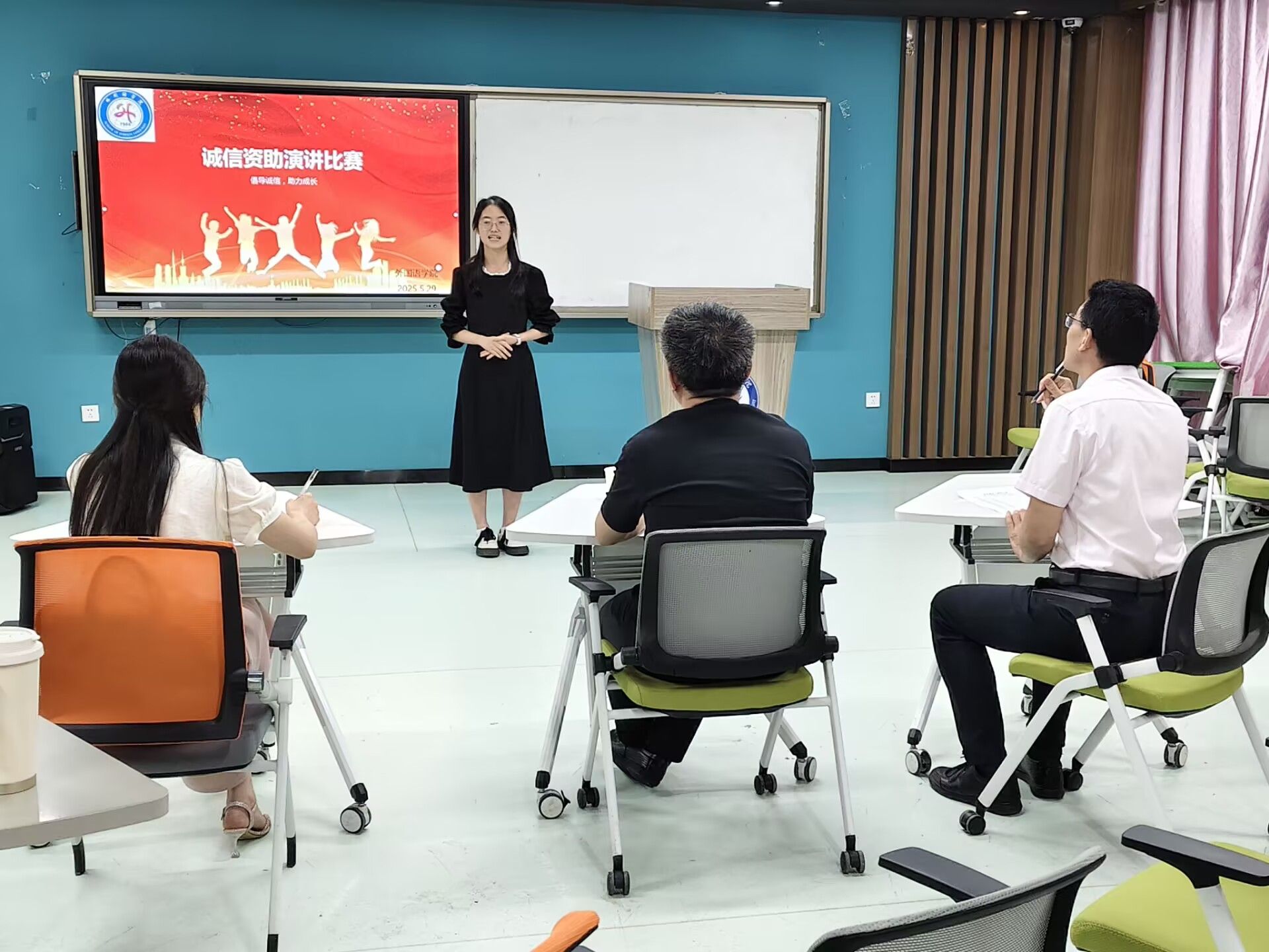 5月29日晚,外国语学院在求知楼B座309教室举办2025年“诚信资助”主题演讲比赛。14名经选拔产生的选手深情讲述受助成长经历,诠释诚信立身、感恩报国的深刻内涵。