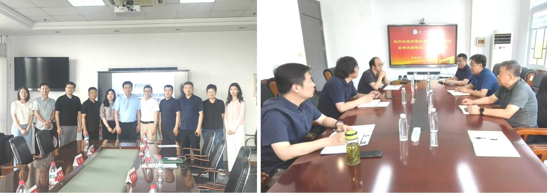 在调研交流过程中,吴伟东介绍了建筑学院的发展历程和面临的挑战,明确了本次调研的主要目标,聚焦建筑类专业发展、人才培养、硕士点申报、实验室建设、学制改革和产学研合作等工作。在苏州大学金螳螂建筑学院副院长申绍杰的带领下,参观了建筑模型实验室、古建营造技艺展示室、建筑物理实验室等平台,与各平台负责人从研究生招生就业、联合毕业设计、国际合作、实验平台搭建等多个维度进行了深入交流。随后,与苏州科技大学建筑与城市规划学院院长邱德华等就专业发展建设、青年教师培养、产业学院及专业改革思路进行了经验分享,并重点交流了本科生培养质量提升的重要举措,邱德华从地理区域类型特点、学科基础、特色办学等方面,对建筑学院发展思路提出了宝贵建议。对实验中心、设计教学中心、图书资料室、专业教室物理空间配置、苏州国家历史文化名城保护研究院、长三角人居环境碳中和发展研究院、江苏省建筑智慧节能重点实验室、苏州市建筑环境技术重点实验室等进行了现场实地交流。