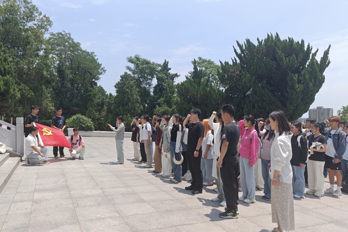 在烈士陵园,所有人怀着崇敬的心情整齐列队于烈士纪念碑前,全体人员向革命先烈默哀三分钟,深切缅怀先烈们的丰功伟绩,寄托无限哀思。在烈士陵园展示厅内陈列着的大量历史图片、实物和文献资料,生动展现了革命先烈们为了民族独立和人民解放事业,前赴后继、英勇奋斗的光辉历程。最后,新发展预备党员面向党旗进行了集体入党宣誓。