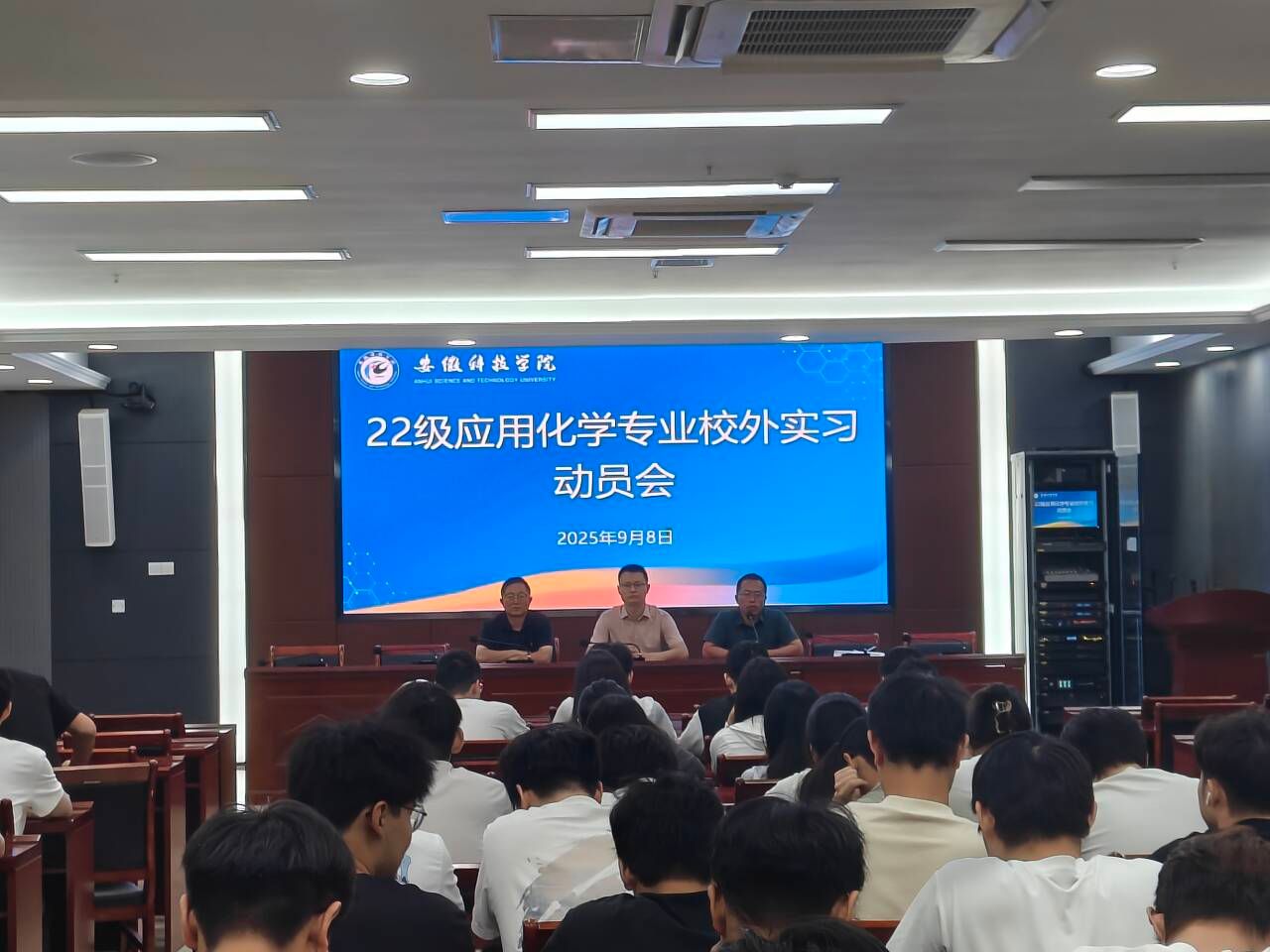 为确保毕业班专业化工实习工作的顺利开展,帮助学生明确实习目标和要求,化学与材料工程学院于9月8日上午在西附楼111报告厅召开应用化学专业化工实习动员会。学院副院长叶龙强,指导教师刘川和郭雨以及全体2022级应用化学专业毕业生参加了此次会议。