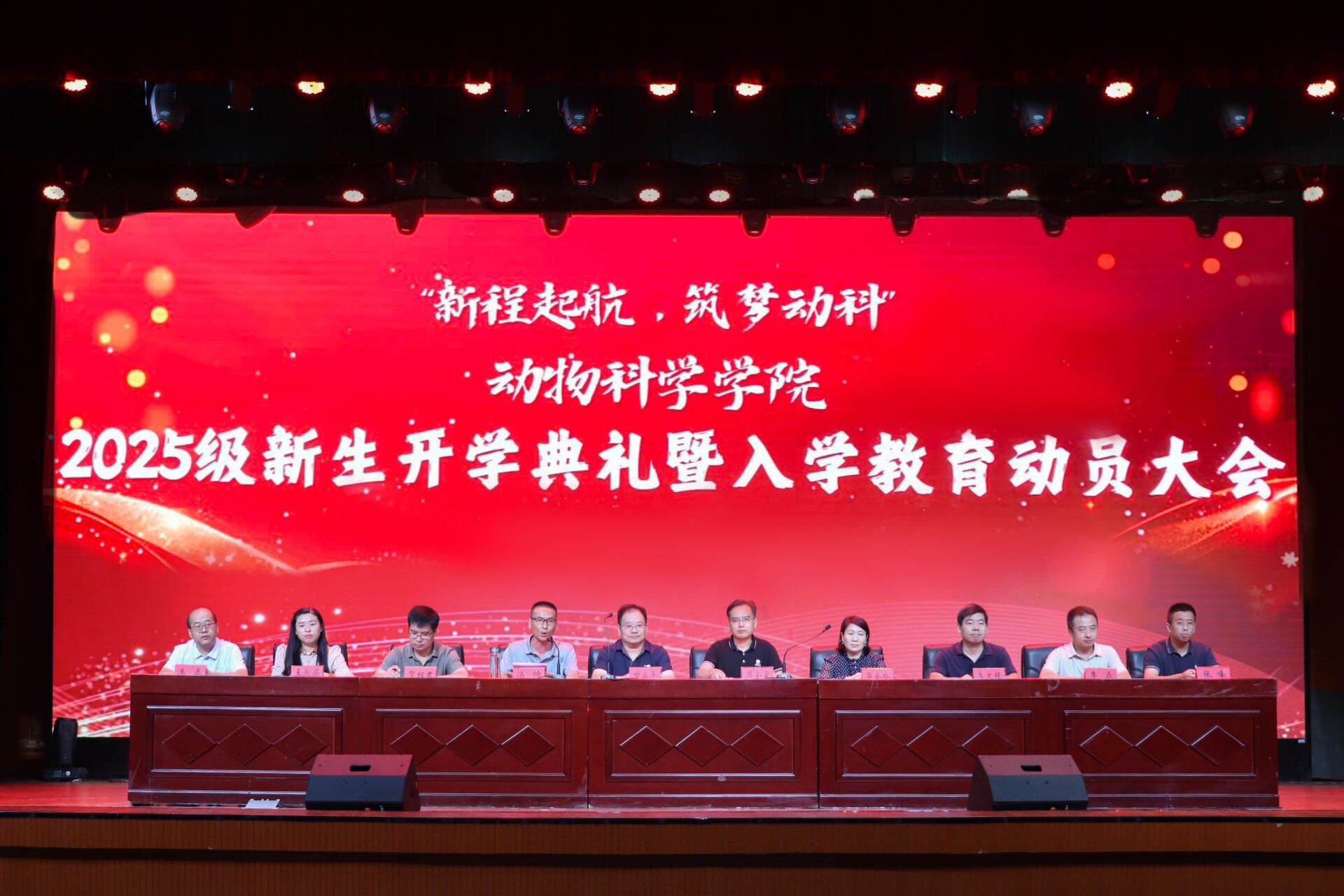 9月10日晚,动物科学学院2025级新生开学典礼暨入学教育动员大会及迎新晚会在凤阳校区大学生活动中心举行。学院党政领导、党委委员、各系(室、中心)主任、教师代表、全体辅导员、老生代表以及400余名新生共同参加了本次活动。典礼由学院党委副书记汤帅主持。