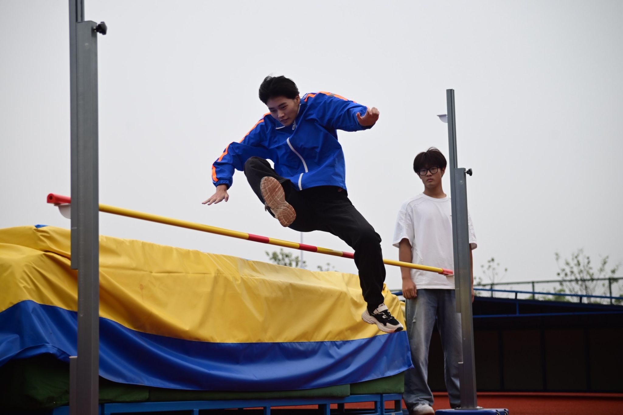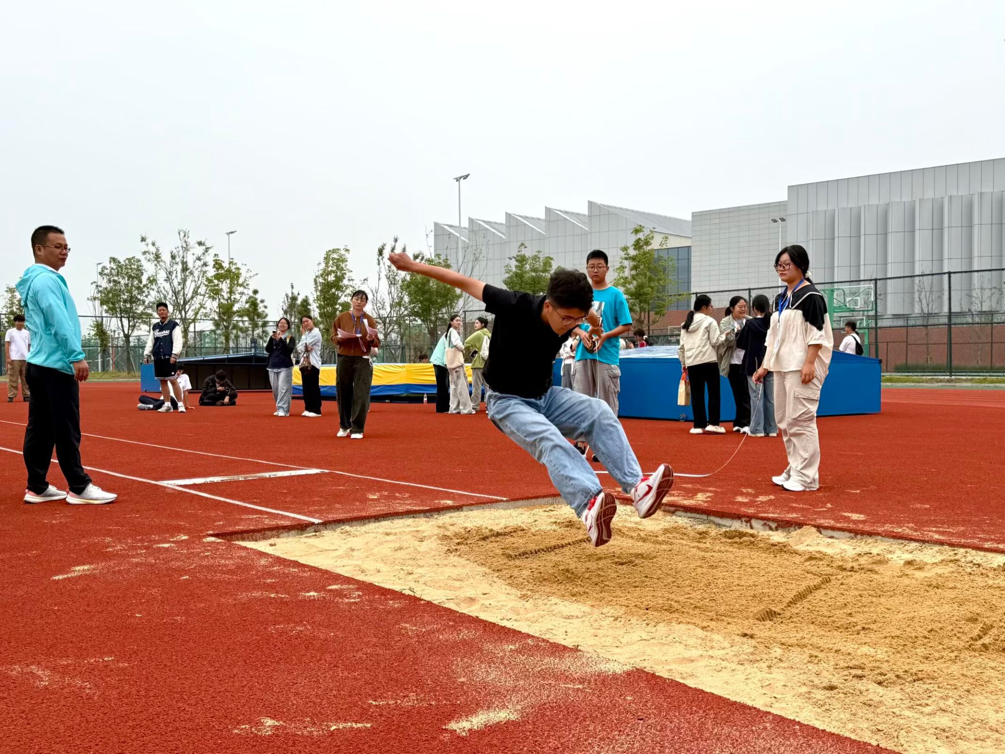 运动场上,人文健儿们身姿挺拔,目光坚定。发令枪响,运动员如疾风掠过红色跑道;跳高架前,选手助跑、起跳、过杆,每一次腾空都彰显无畏勇气;跳远沙坑中,运动员助跑的铿锵步伐,在落地的瞬间定格出优美的拼搏姿态。